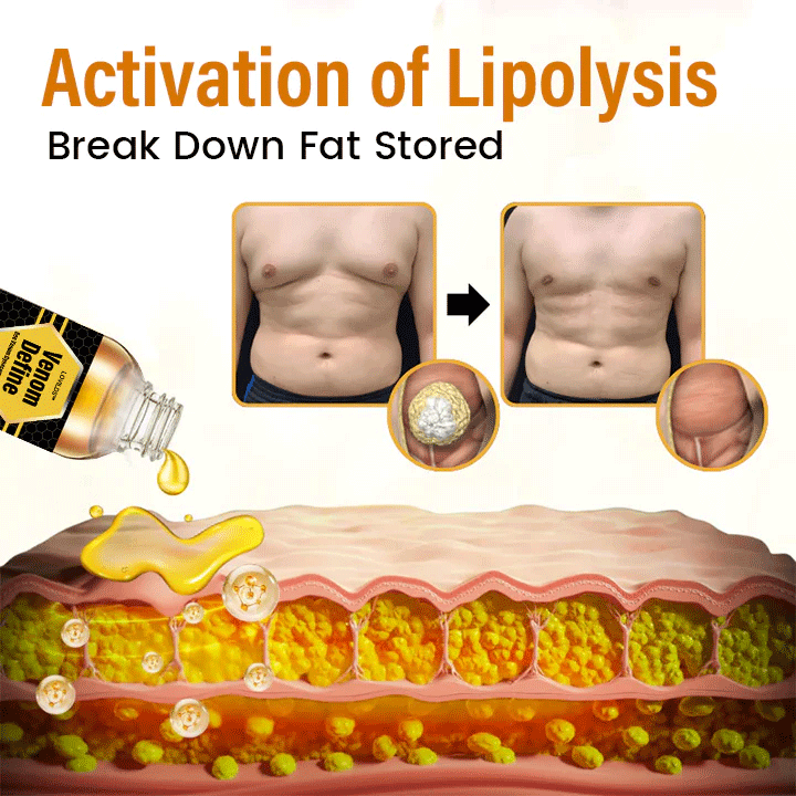 LOVILDS™ VenomDefine Bee Venom Oil contains a powerful blend of active ingredients, with one of the core components being a natural bee venom extract. Its key compound, Melittin, activates the body’s lipolysis mechanism, penetrating deep into the subcutaneous fat layer to target localized fat deposits. This helps break down excess fat cells, effectively reducing chest fat accumulation and glandular enlargement in men.